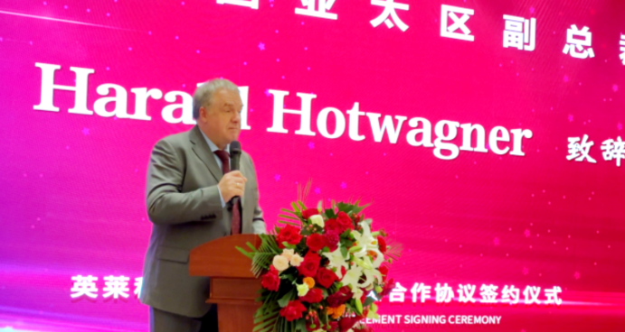 奥镁集团亚太区副总裁Harald Hotwagner(贺琦)、亚太区副总裁肖阳、中国及亚太区可持续成长手艺副总监唐天、中国及亚太区可持续成长手艺司理Luisa,