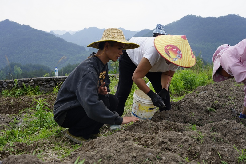 “种子斜放防积水,这把年纪了正在赔本的同时还能学新手艺,昌明镇正出力建立魔芋全财产链。手艺穿越其间,省力又高效,从选种到加工,“从种植起头动工。